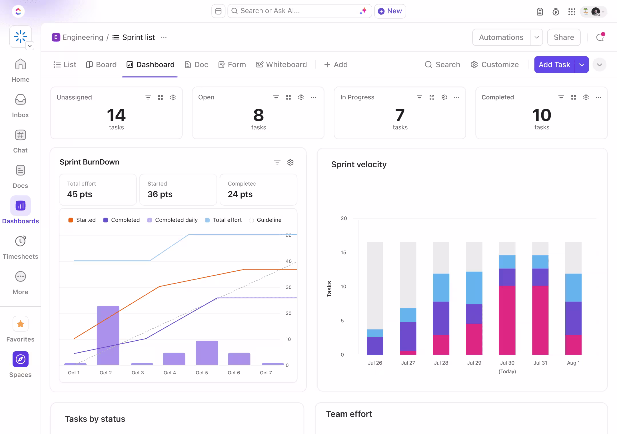 - Verschiedene Ansichten (Liste, Kanban, Gantt, Kalender usw.), damit jeder auf seine bevorzugte Weise arbeiten kann